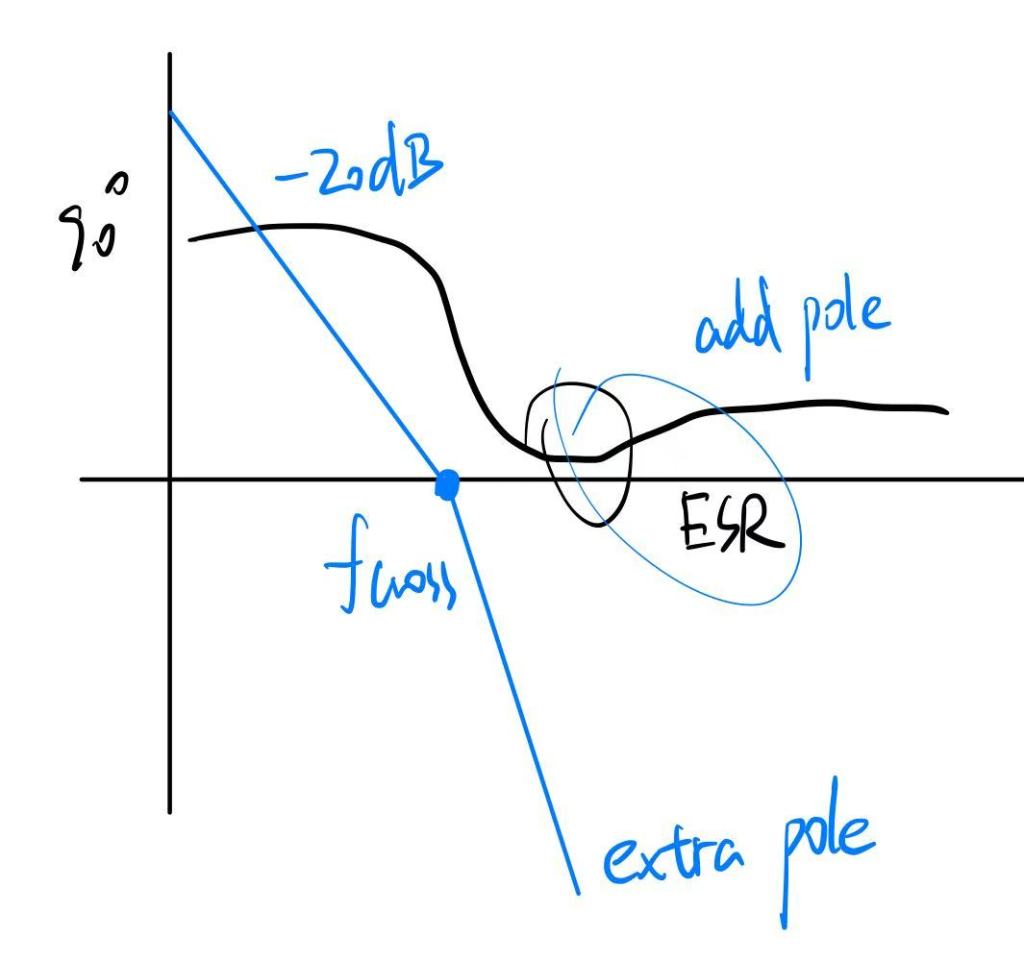 - Pole 1 (P₁) is added to cancel the ESR zero introduced by the output capacitor: Real-world capacitors include a small resistance known as ESR (Equivalent Series Resistance). This ESR, combined with the capacitor, forms a zero in the transfer function: