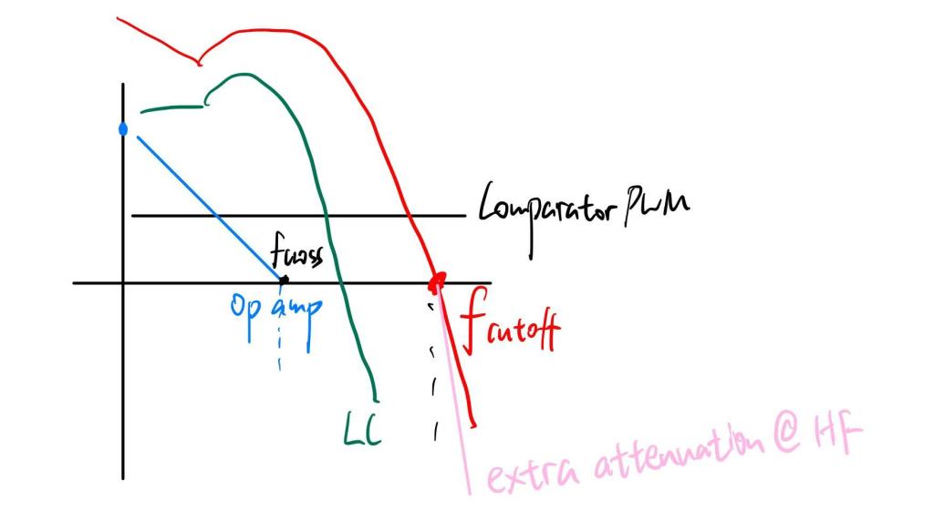The LC filter introduces a double pole where there will be a sharp gain drop and phase lag near fLC. To counteract two poles, we add two zeros: