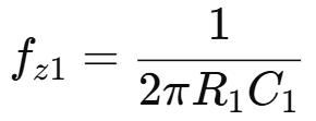 - Zero 1 (Z1) is added by placing a resistor R1 in series with C1 in the feedback path of the op-amp: