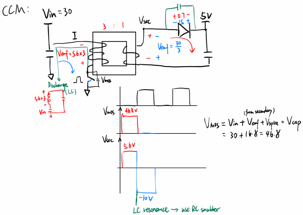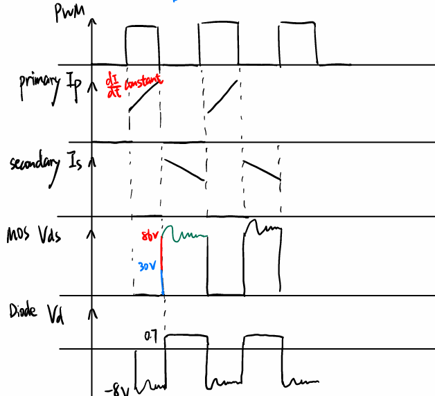 One key issue I observed was LC resonance at the diode node, caused by the diode’s junction capacitance and transformer leakage inductance.