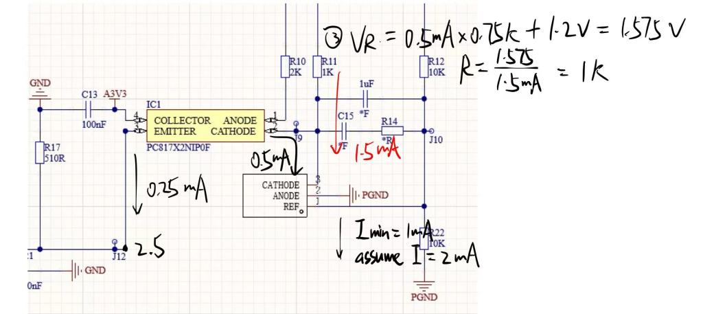 - As Vout approaches the 5 V target, the divider node reaches 2.5 V, the TL431 begins to conduct, driving current through the optocoupler LED. The optocoupler transistor pulls down the V- of comparator on the primary side, reducing duty cycle and peak current.