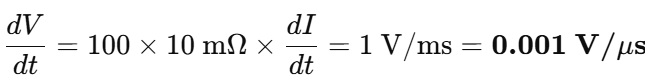 0.52V/µs is sufficient for LMV358B. For a current slope of 1 A/ms, the 10 mΩ shunt with ×100 gain produces